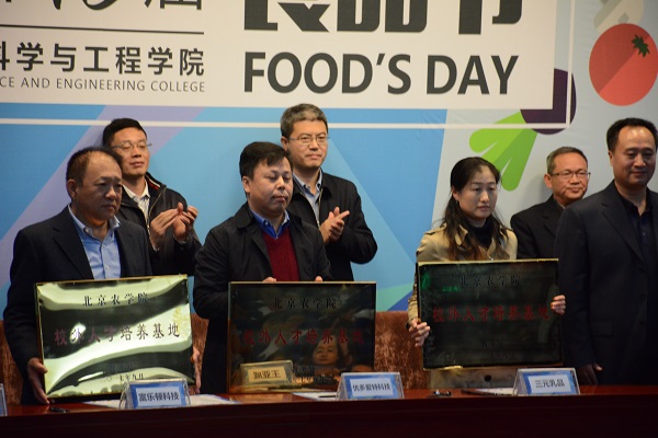 开幕式中,与会企业与beat365共同倡议,建立了食品专业大学生创新创业实践教育联盟,还举办了大学生专业实习基地签约、授牌仪式。北京市实习基地北京红叶葡萄酒有限公司总工程师刘文忠作为企业代表发言,他认为学校与企业的合作是双赢的,学生是最具创新能力的,并对本次食品节表示了美好祝愿。