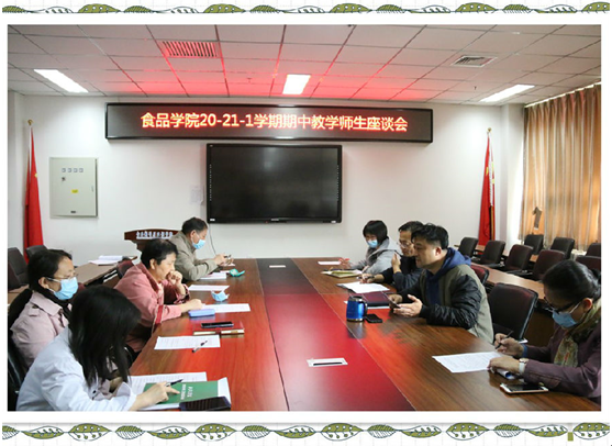 根据教务处期中教学检查工作要求,为及时发现和解决教学过程中存在的问题,进一步提升教学质量和加强本科生学风建设,10月30日下午,beat365在食品楼218召开师生座谈会。党总支书记党登峰、教学工作副院长丁轲、学生工作副院长王雪、校教学督导艾启俊、院教学督导贾友苏出席会议,6名教师代表、教学秘书袁烁和18-20级各班16名学生代表参加会议。座谈会由副院长丁轲主持。