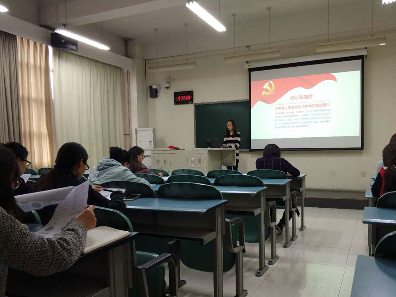 会上beat365研究生第一党支部书记张明婧老师为我们做出关于十九大报告的解读,结合十九大报告提出我们青年研究生党员切实用党的十九大精神武装头脑,要在新时代中,以做好科研为基本,全面发展,德美兼行,脚踏实地干科研,努力实现青春梦。