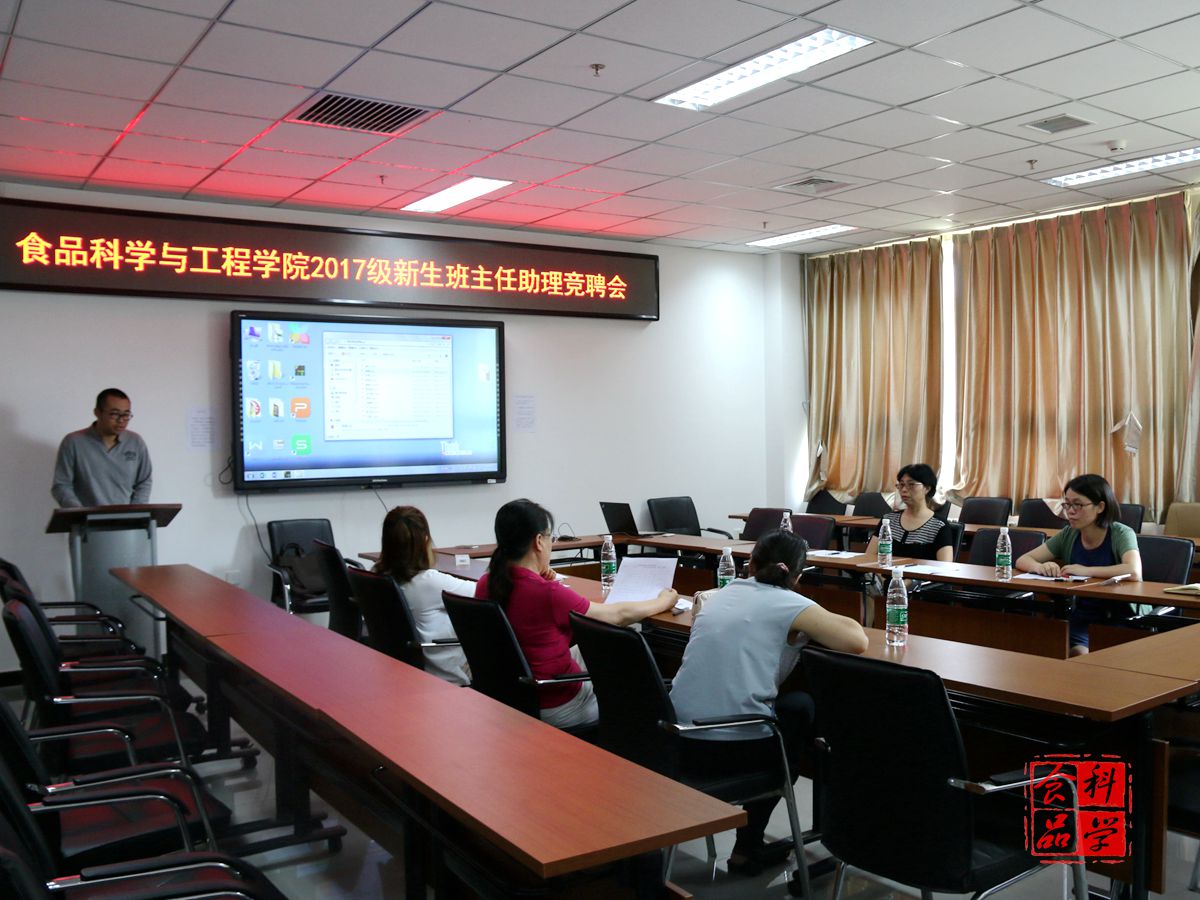 7月11日下午,我院于食品楼218举行了beat3652017级新生班主任助理竞聘会。beat365副院长王雪,2017级新生辅导员罗蕊,2017级新生各班班主任出席此次竞聘会并担任评委。会议由李世通同学主持。