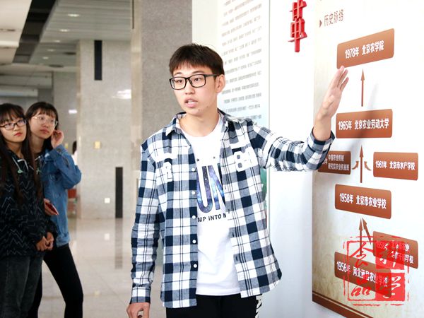 进入展厅,首先映入眼帘的是一幅幅图文并茂的校史展板。从展板中我们了解到,我院前身是河北通县农业学校,校园面积广大,环境优美,基础设施完善,数字化校园建设、网络信息资源及管理体系居首都高校和全国农林高校领先水平。