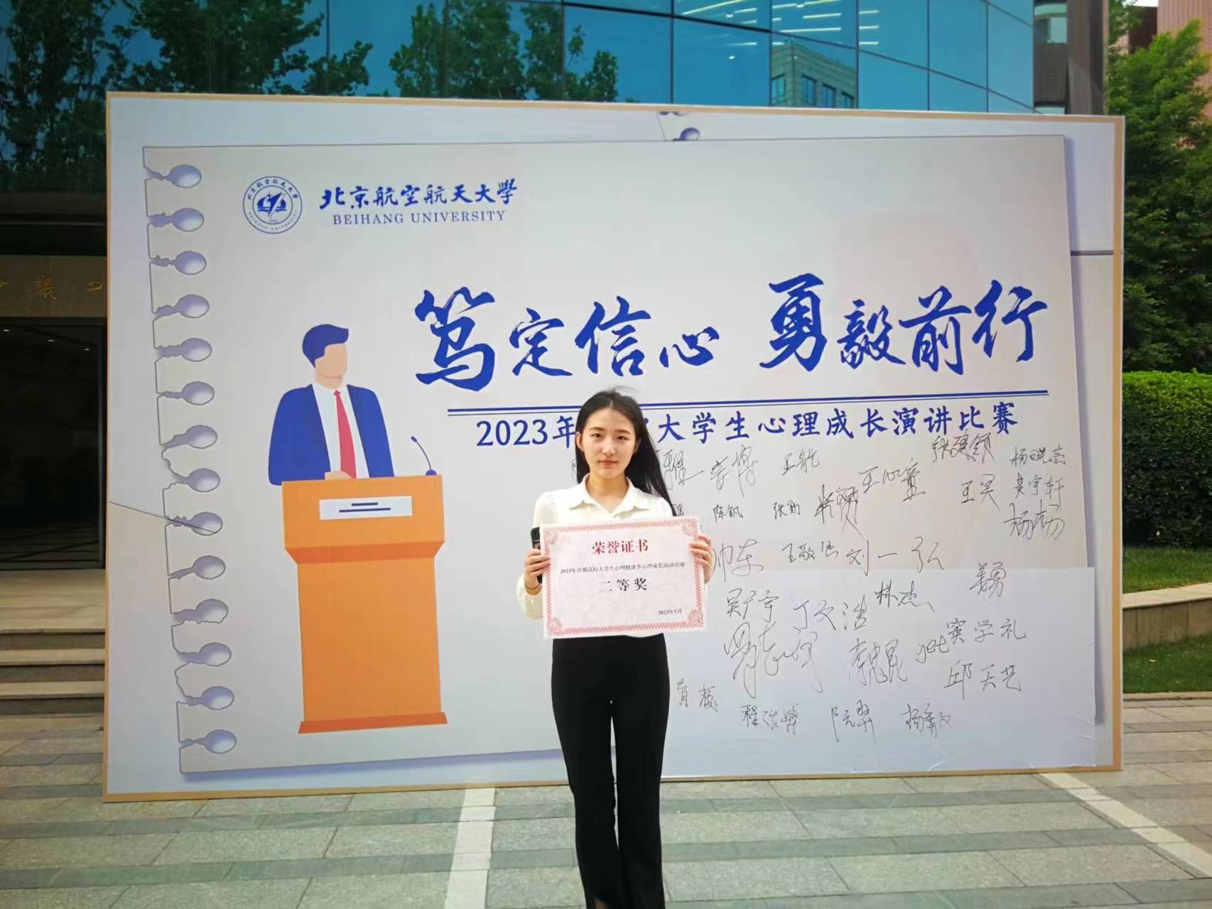 5月14日,由中共北京市教育工作委员会主办、北京航空航天大学承办的2023年首都大学生心理健康季心理成长演讲比赛决赛举行。beat3652020级食品质量与安全专业1班本科生闫春润经过校赛评选推荐、市赛专家初评等层层选拔,代表学校入围决赛。与来自北京大学等首都高校的19名选手同台竞演,最终荣获二等奖。