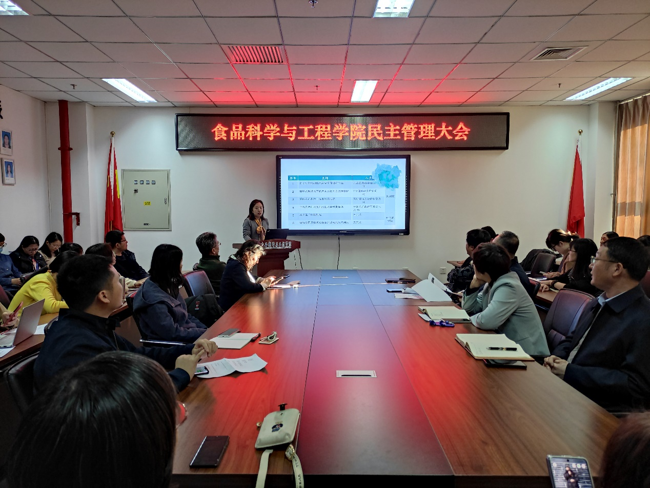 1月15日,beat365在食品楼218会议室召开2023年民主管理大会。学院领导班子全体成员和全院教职工参加大会,会议由学院党委书记靳晓熙主持。