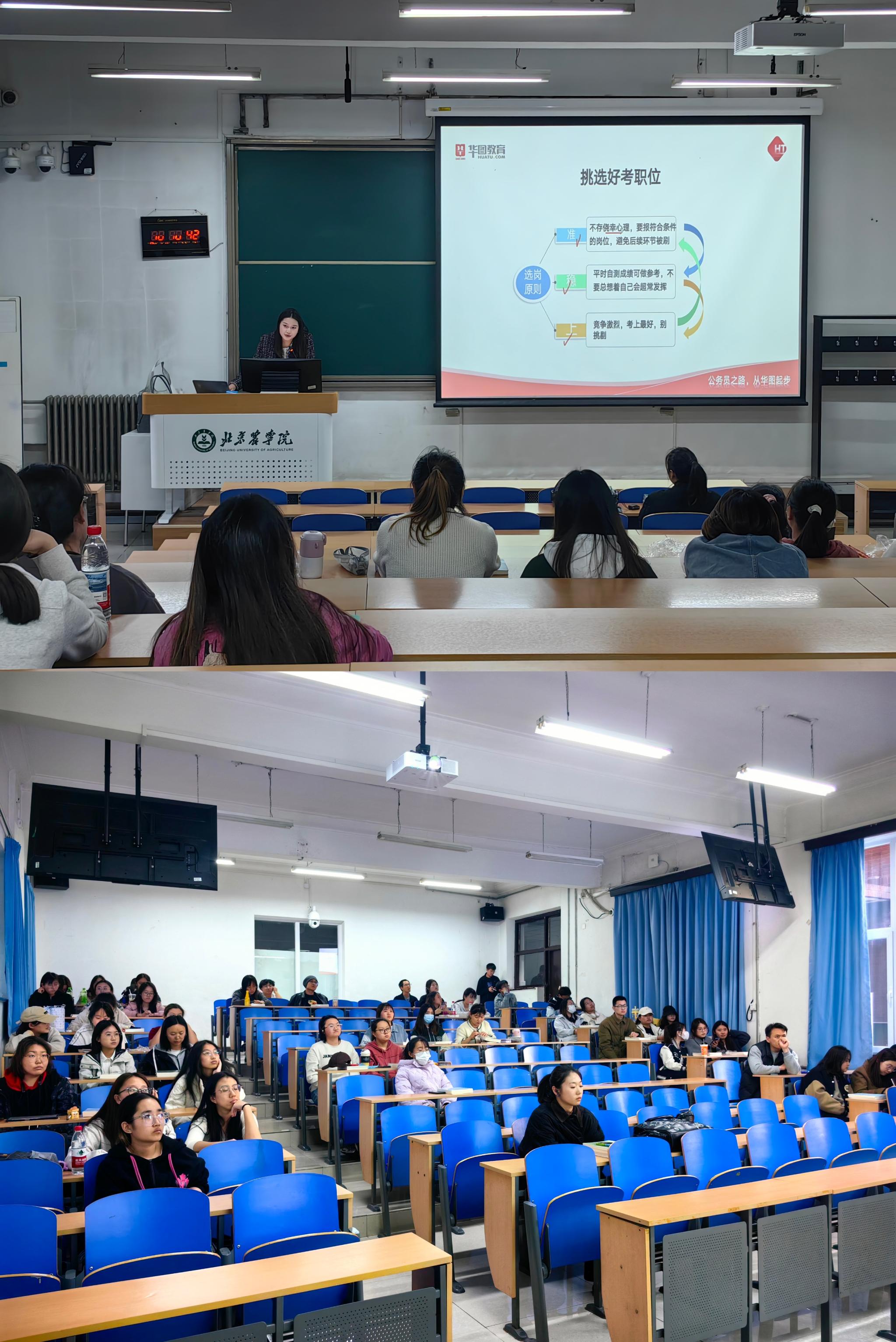 讲座现场,李田田结合自身的教学经验,从公务员/事业单位考试的报考指导、选岗原则、报考流程、考试内容、答题技巧等方面进行了全面细致的讲解。她以幽默风趣的语言,结合生动的案例,深入浅出地解析了笔试申论和面试的典型例题。同学们在轻松愉快的氛围中,不仅对公考事考有了更加清晰的认识,还掌握了诸多实用的备考技巧。讲座结束后,同学们纷纷表示受益匪浅,现场掌声不断,气氛热烈。