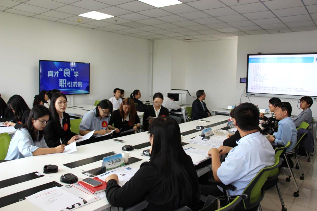 现场模拟比赛主要分为个人展示、无领导小组讨论两个环节。中国食品发酵工业研究院人力资源部高级主管胡惟瑾、北京康比特体育科技股份有限公司人力资源经理胥万幸、谱尼测试集团股份有限公司人事主管荣翔宇、北京三元梅园食品有限公司人事总监才英翠,学校就业指导中心主任罗蕊担任评委。