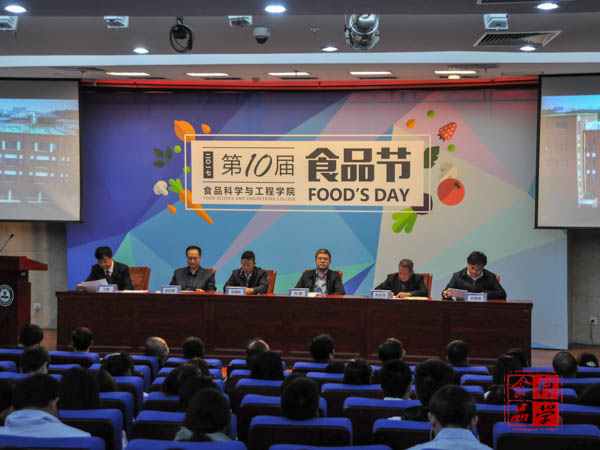 奏唱国歌之后,全体师生观看了《十全“食”美——我院历届食品节回顾》视频。随后,院长张红星致辞。他指出:自2008年学院开始举办大学生食品节至今,十年历程,是食品人不忘初心,牢记使命,秉承、倡导食品行业的诚信操守,致力于培养学生实践能力和创新能力。