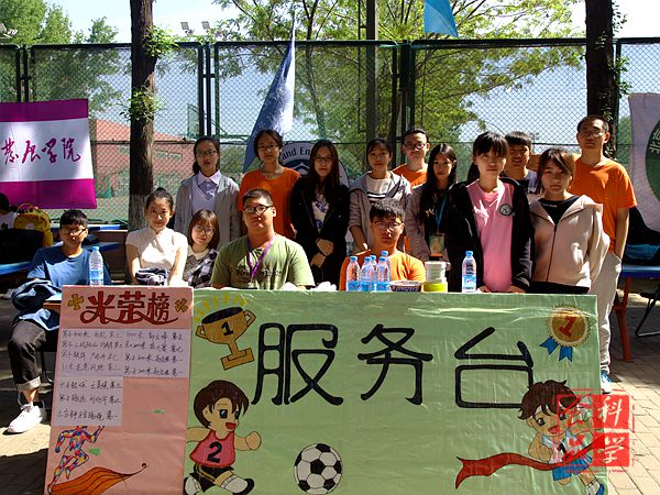 我院服务台由我院学生会负责,他们的工作是负责按照秩序册分拣号码牌;通知运动员们按照检录时间领取号码牌帮助他们把号码牌别在衣服上;通知并提醒运动员检录时间;提供一些水和补充能量的小零食;张贴光荣榜;以及一些紧急情况的处理。他们要一直盯着运动会的时间安排表,反复确认,以确保运动员们准时达到检录出。分散在操场各处的志愿者们在日头地下时刻关注着器材是否到位没有损坏、运动员们是否出现摔伤。他们穿梭在操场之间,不比运动员们轻松,他们也是神经紧绷,场上的任何状况都逃不过他们的眼睛。