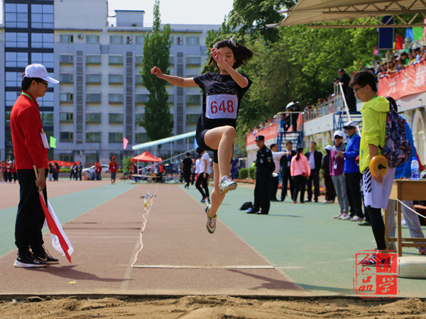 在运动会开始的短短半天中,我院的光荣榜上多了一个又一个名字。其中,女子三级跳破纪录甚为突出。她就是我们学院的马云娃同学,继去年打破尘封十二年的校记录后,她再次完成了自我的超越。