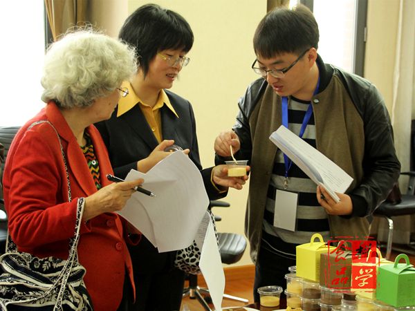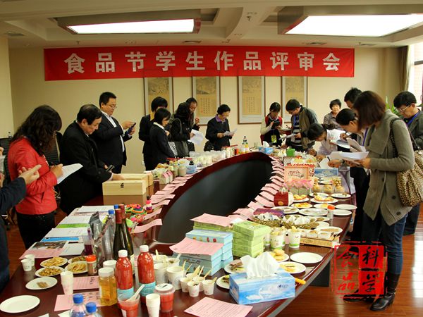 为了从专业的角度评比食品节中由学生亲自动手制作的作品,本届食品节主办方组织多位专家、老师在图书馆302进行了打分评比工作。北京食品协会常务副理事长、食品工业协会会长周以秋,北京食品科学研究院院长王守伟,北京稻香村食品公司总经理池向东,包装工程专业建设顾问孙容芳教授,beat365副院长伍军以及各兄弟学校老师参与评分。