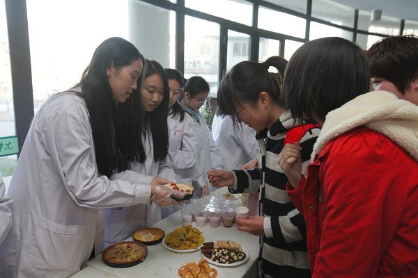 在第六届食品节上,我院师生共推出三十余种自主设计制作的特色食品,包括“纸不住”香菇、柿子山楂酸奶、冰激淋、天然蔬菜粉等。这些食品不仅在味道可口,还具有如降血脂、助消化等对人体有益的功效。
