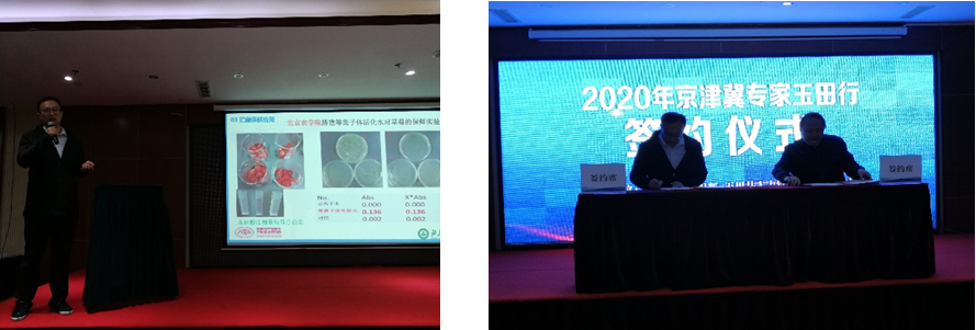 在校办产业处李志敏副处长的组织和协调下,beat365孙运金副教授应邀参加了2020年“京津冀专家玉田行”活动。在唐山市人才交流中心和玉田县组织部的精心组织和筹划,项目路演活动于2020年10月16日在玉田晶玉宾馆顺利进行,孙运金副教授做了题目为“大气等离子体技术在储藏保鲜中的应用”报告,就等离子技术来源和发展做了详细介绍,针对等离子体技术在农业中的杀菌和保鲜进行了专题报道。现场引发参与企业的热烈提问,对是否能够落地玉田进行了探讨。特别是唐山市盛川农产品股份有限公司,与孙运金副教授对等离子体技术的具体实施模式以及应用实践情况进行了深入探讨,初步打算以农产品保鲜、速冻、深加工为名进行了项目立项,并在现场进行洽谈和签约,为项目的后期合作做好铺垫。