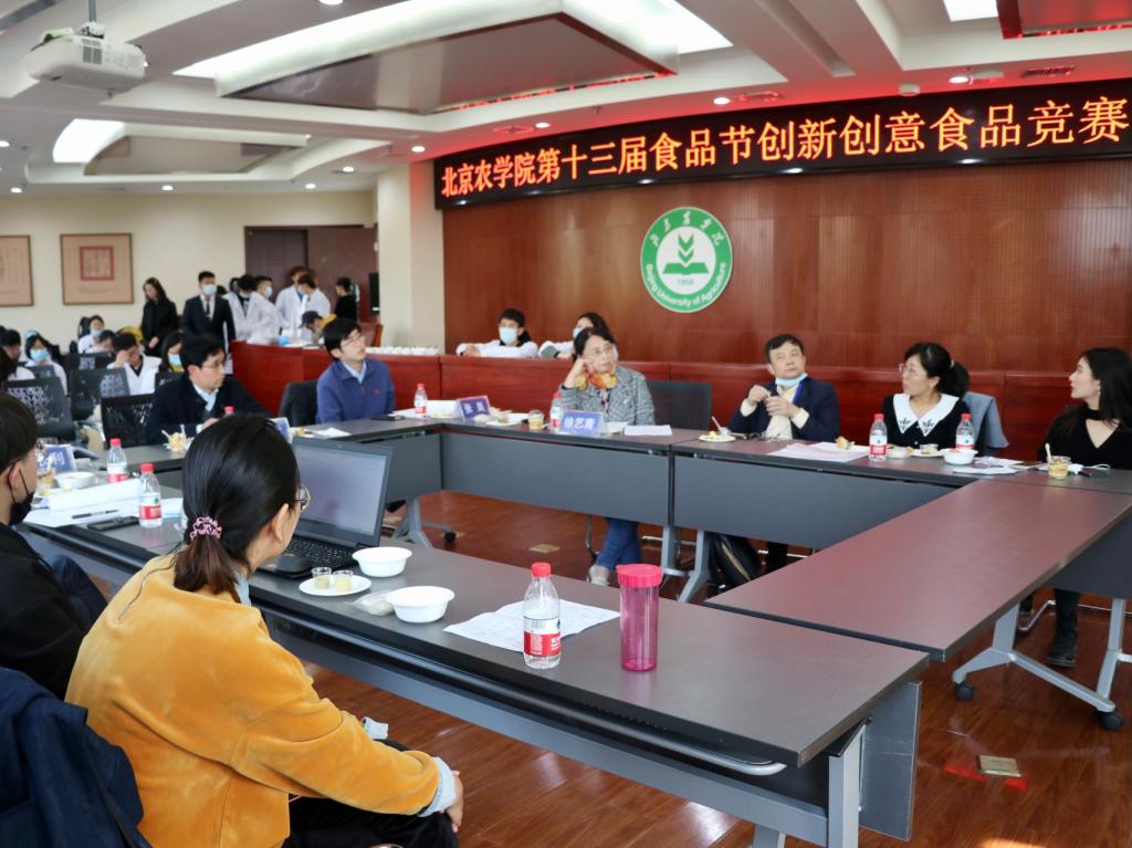 竞赛邀请到来自北京嘉和一品餐饮管理有限公司食品安全管理部总监白松、湖北良品铺子食品工业有限公司产品开发负责人胡长利、中国农业大学教师张昊、北京市理化分析测试中心研究员高丽娟、中国食品发酵工业研究院发酵工程研发部研发中心副主任于学健、中国海关科学研究中心研究员曾静、北京印刷学院教师刘全校、北京经济管理职业学院教师赵泾钧等8位校外评委和学院相关专业教师仝其根、徐艺青、伍军等3位校内评委共同组成评委组。