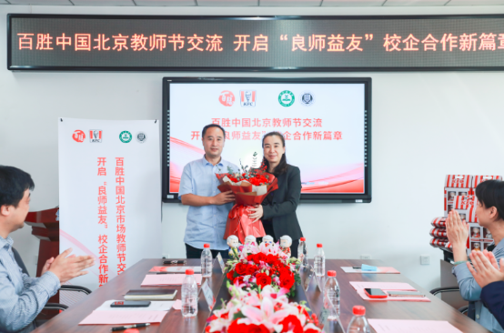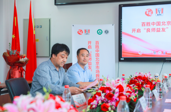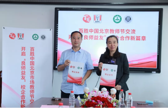经过充分的交流,双方达成合作意向,由张红星、赵莉代表双方,签署了校企合作协议。同时,赵莉还代表百胜中国北京肯德基有限公司向全院教师送上了教师节的祝福。