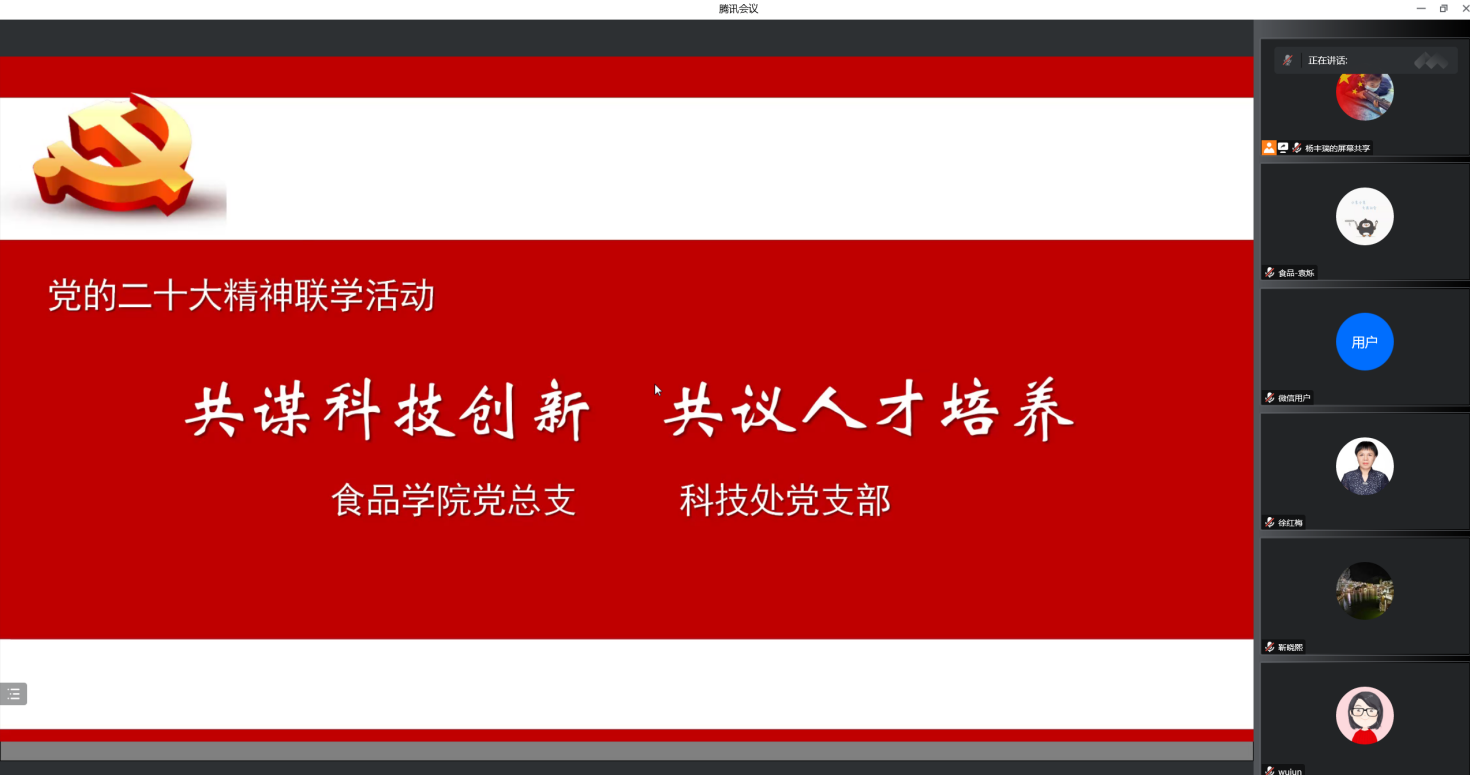 12月7日下午,beat365党总支与科技处党支部开展党的二十大精神联学活动,围绕“共谋科技创新,共议人才培养”主题,就教育、科技、人才专章进行集体学习。会议由我院党总支书记靳晓熙主持。beat365与科技处全体教职工参会。