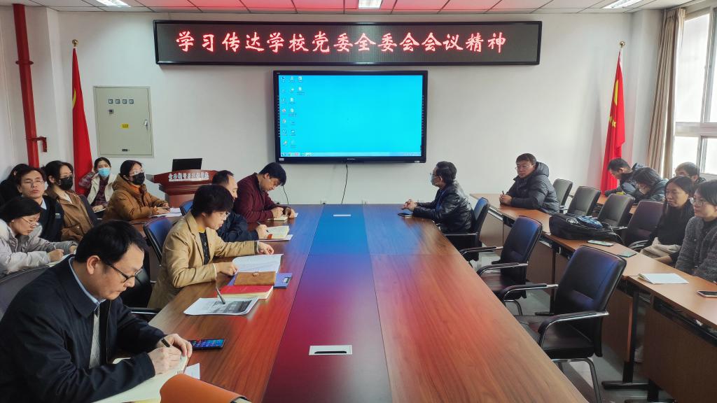 2月21日中午,beat365召开全体教职工大会,学习传达学校党委全委会会议精神。会议由学院党总支书记靳晓熙主持。