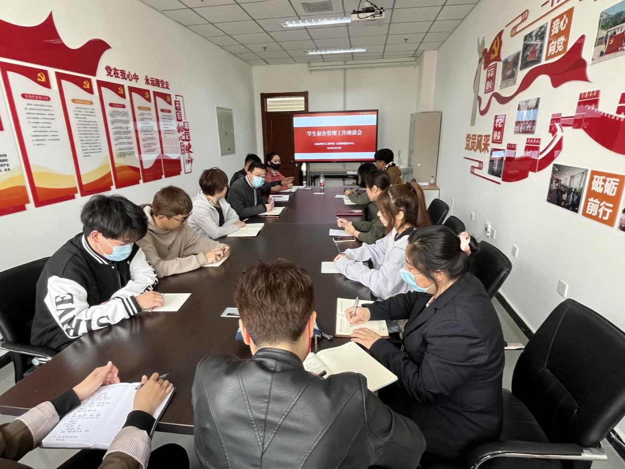 我院学工队伍教师与公寓管理中心老师和楼长,就日常管理和驻楼工作进行了深入的讨论,共同探讨如何提升学生宿舍管理效能和服务水平。