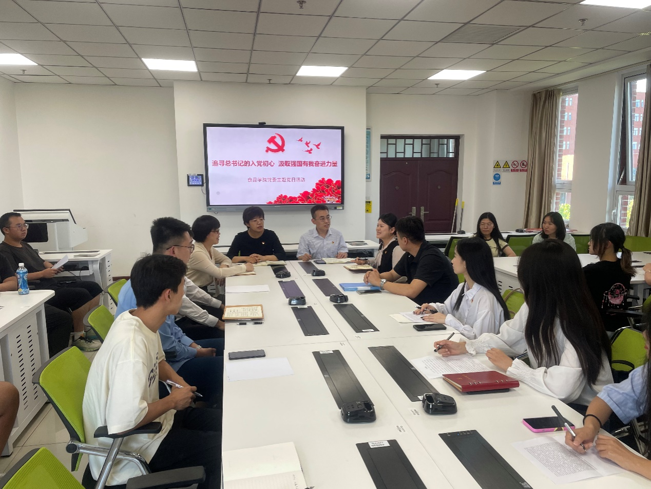 为庆祝中国共产党成立102周年,深入开展学习贯彻习近平新时代中国特色社会主义思想主题教育,引导青年大学生积极向党组织靠拢,为建设教育强国贡献青春力量,6月29日下午,beat365党委在食品楼509召开 “追寻总书记的入党初心 汲取强国有我奋进力量”主题党日观摩展示活动。学院党委书记靳晓熙,党委副书记、副院长王雪,党员代表和大一入党积极分子参加活动。主题党日活动由酿酒工程本科生党支部书记魏晓峰主持。