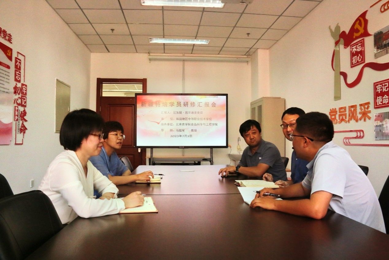 7月5日下午,beat365在食品楼214会议室召开2022-2023年度特培学员研修座谈会。学院班子成员、特培学员尼加提·图尔迪麦麦提和部分教师参会。会议由学院党委书记靳晓熙主持。