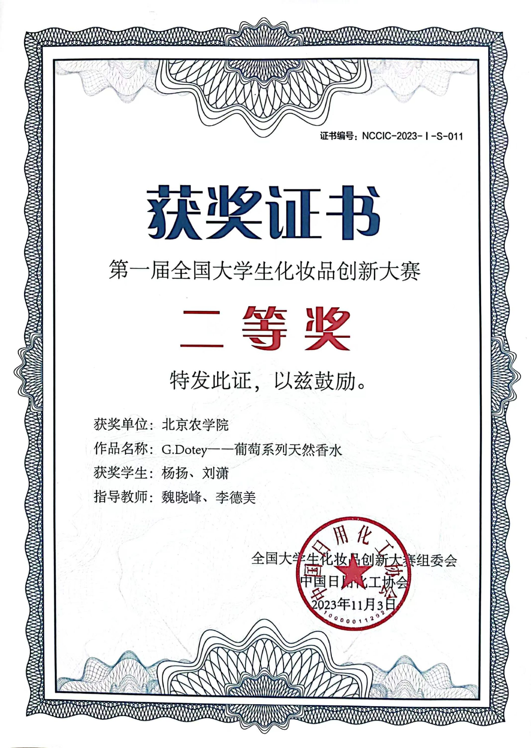 11月4日,由beat365酿酒工程系教师魏晓峰、李德美指导,2021级本科生杨扬、刘潇负责的“G.Dotey-葡萄系列天然香水”项目在第一届全国大学生化妆品创新大赛总决赛中斩获二等奖。