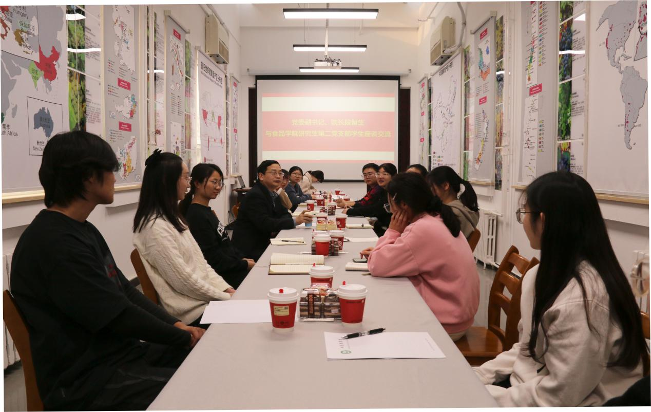 “我今年最大的收获就是通过努力来到自己心仪的大学读书,之前我院只停留在我朋友的口头上,停留在网络中,但跨入校门那一刻,学校的环境、实验室的建设、老师的关爱都让我感到作为我院的研究生太幸福了”,2023级研究生杨天天述说着自己的求学经历,这让很多新生产生了共鸣。“疫情期间备考,驻楼老师们全力保障我们的安全,日夜为我们服务的日子让我仍记忆犹新,也是我发着高烧坚持到考试最后的动力。现在梦想成真,我也怀着感恩的心,积极参与志愿服务活动,今年有幸参与了链博会志愿者”,2023级闫倩楠同学激动地说。研究生第二党支部学生逐一向院长汇报自己2023年的收获和感受。段留生一一回应,他表示,听到同学们对学校环境美化、服务质量提升方面的肯定感到很欣慰。学校一直坚持“以学生为中心”的发展理念,努力为学生营造更加舒适的学习生活环境 ,也希望每位北农学子都能够为学校发展献计献策,共建美好校园。