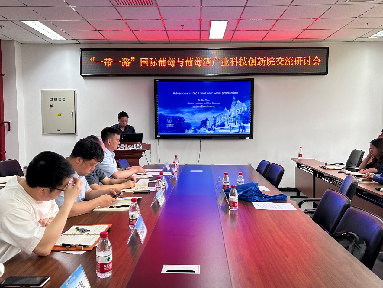 近日,“一带一路”国际葡萄与葡萄酒产业科技创新院与新西兰林肯大学葡萄酒系举行学术交流研讨会。本次会议旨在加强两校在食品科学与酿酒领域的合作与交流,增进双方教师和学生的学术互动与友谊。来自新西兰林肯大学葡萄酒系的田斌老师和Jeff Sun老师,beat365院长张红星、副院长丁轲、酿酒系全体教职工、葡萄与葡萄酒专项班研究生参加了会议。