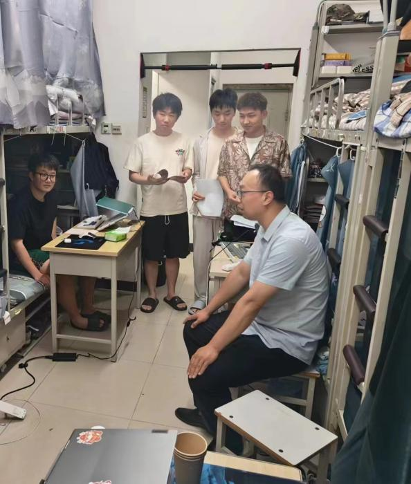为深入开展党纪学习教育,推动优良师德师风涵育践行,引导教师全员育人践初心,我院教师党支部书记深入学生宿舍,开展第八期“师生面对面”活动。此次活动面向大三学生,师生共谈学习发展、生涯规划、生活身心,实地了解学生学习生活状态和困难,解答学生心中疑惑。
