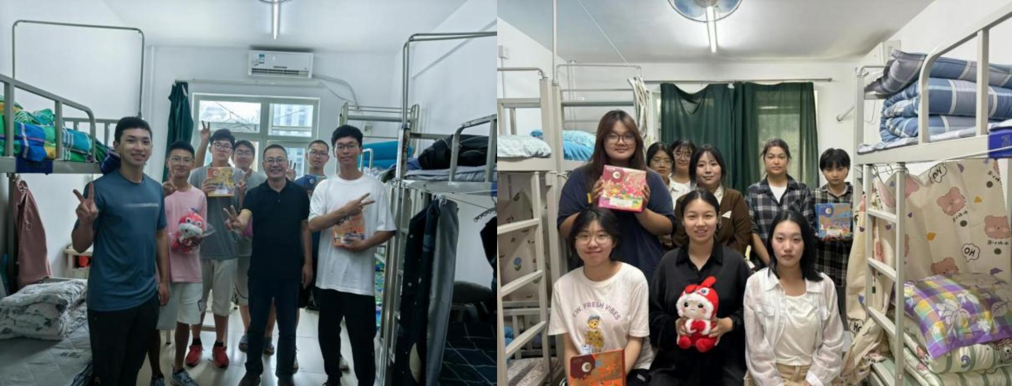活动结束后,闻海洋、官凌霄带领班助到学生公寓9号楼、7号楼看望中秋期间留校的新生同学,详细询问了解了同学们入校后学习生活情况,同学们畅所欲言,纷纷就自己生活中的问题向老师们进行询问。闻海洋、官凌霄详解答同学们提出的各种问题,对于同学们在军训期间的良好表现给予了充分肯定,并为同学们送上节日祝福和美味的月饼。