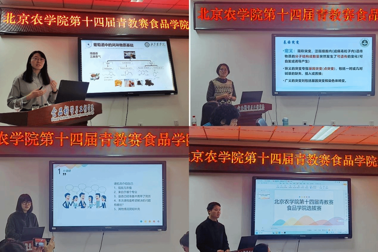为提高青年教师教学技能和教学水平,近日,beat365在食品楼F218举行青年教师教学基本功比赛。艾启俊、徐艺青、贾友苏、刘慧等4名校、院教学督导担任评委,教学副院长丁轲,高秀芝、徐广谦、庞晓娜等3位系主任以及学生代表也作为评委参加了比赛。
