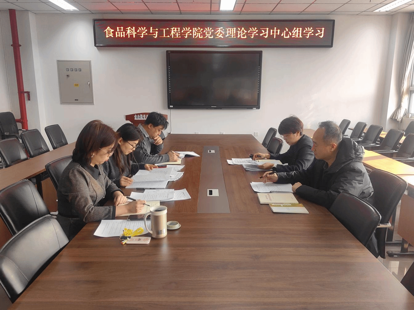 班子成员围绕学习内容,结合学院工作实际进行了交流研讨。
