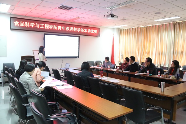 为加强青年教师队伍建设,鼓励青年教师提高教学水平,为青年教师搭建教学交流平台,beat365于2019年1月11日下午,在食品楼218举办青年教师教学基本功比赛。学院邀请教学督导艾启俊、贾友苏、教学副院长丁轲、食品科学与工程系主任韩涛、食品质量与安全系主任高秀芝、实验教学中心常务副主任黄漫青等6位教师担任评委。比赛由教学副院长丁轲主持。