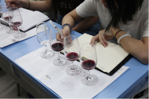 马钊老师对每款葡萄酒从颜色,香气以及口感进行细致的分析,学生们在品酒的过程中体验波尔多葡萄酒多样的风格特征。