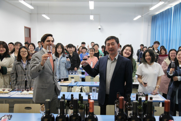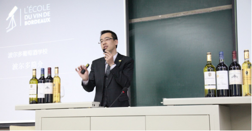 4月15日下午《葡萄酒欣赏》公众选修课中,李德美老师邀请了法国波尔多葡萄酒学校授权讲师马钊为120名同学们讲授“波尔多葡萄酒初级课程”,并品鉴了4款波尔多经典葡萄酒。马老师深入浅出地讲解了波尔多产区的历史、地理条件、波尔多葡萄酒类型以及葡萄酒品尝的技巧等。